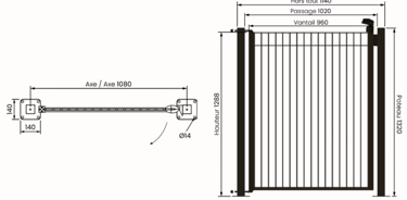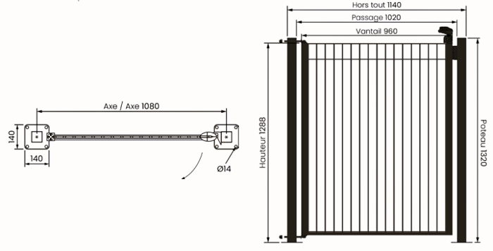 Hauteur : 1300 mm sur platine 1775 mm à sceller
